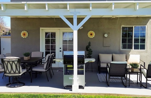 **FULLY FURNISHED Short or Long-Term Rental** We offer temporary housing for Work, Travel, Remodel, House Hunting, Insurance and more. A beautiful and spacious nature-inspired home conveniently located in central Simi Valley, fully remodeled with upscale amenities including 3 big-screen smart TV's. Enjoy the bright, open floor plan with a bedroom and full bathroom downstairs. Experience glorious sunsets from our enormous yard with BBQ, loads of seating, dining and covered patio to enjoy those summer evenings! We are a few short blocks from Frontier Park with miles of waterside walking and biking trails. You will be close to restaurants, tennis, hiking, golfing, shopping, horseback riding, wine tasting, The Reagan Library and the Santa Susana Railroad Depot.