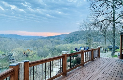 Want to get away from all that’s going on in the world? Sanitized after each rental! Your dream vacation home is now available for rental. Incredible attention to detail throughout. Very close to multiple boat launches on the North Fork River, the White River and the crystal clear waters of Norfork Lake as well a grocery, bank, post office, 4 fantastic restaurants and 2 liquor stores that are open on Sunday. Hiking and ATV/UTV trails very close. Watch the eagles soar from your hot tub and fire pit on the bluff overlooking the river. Curl up on the sofa next to the fireplace and look out the wall of glass at the incredible natural scenery. Located on paved road... so NO gravel roads.