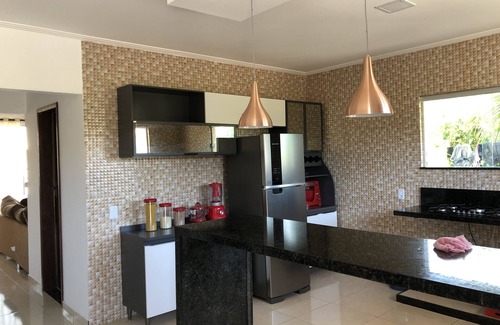 Full kitchen with all appliances, refrigerator, stove, microwave, water filter, in addition to all utensils (cutlery, glasses, plates, cups, pans, sandwich maker and blender), laundry with tank and washing machine.