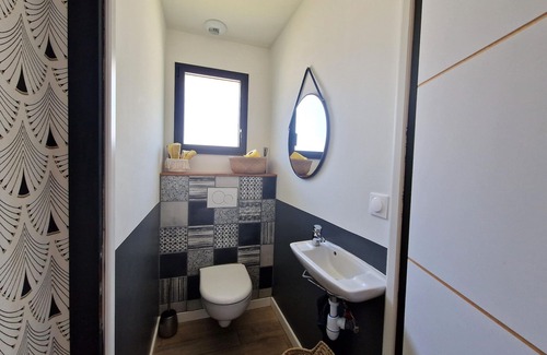New single storey house in a quiet location in the municipality of Ploemeur, a few minutes from the sea, the Cité de la Voile Eric Tabarly (3.5 km) and the beautiful sandy beaches of Larmor-Plage (6 km). The large living room leads out onto a 400 m2 large, enclosed and secluded garden with sun loungers, garden furniture, plancha, parasol and 1 parking space. Thanks to the huge sliding windows you have the feeling of living outside all year round. You can fully enjoy the 7x4 m heated pool (safety regulations). Located on the border between two departments in southern Brittany, Ploemeur and its surroundings offer a wide choice with over 100 km of beaches and numerous sites to visit on the Finistère and Morbihan sides (Doelan, Pont Aven, Auray, Carnac, Quiberon, etc.). Activities. A crossing to the Ile de Groix is also an unforgettable experience. The Bluegreen Ploemeur-Ocean golf course offers a magnificent course in a beautiful setting with a breathtaking view of the ocean and the island of Groix. Every year, no fewer than 11 Celtic nations gather at the Interceltique de Lorient festival. It offers the opportunity to discover Celtic music and gastronomy. For its 52nd edition, the Festival Interceltique 2023 puts Ireland in the spotlight from August 4th to 13th.