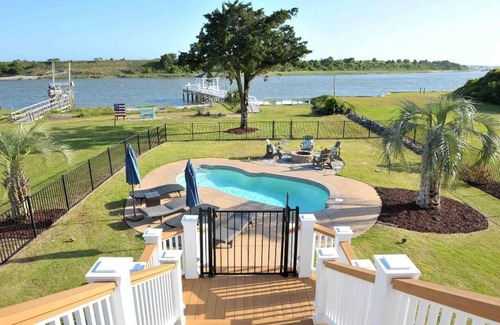 Beautiful ICW views! Private pier, pool, hot tub, fire pits, and more! | House in Shallotte