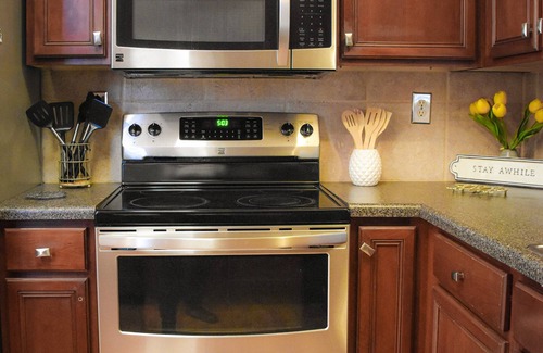 -The kitchen is equipped with Stainless steel appliances, basic cookware, salt, pepper and sugar