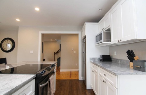 Our getaway is nestled in the heart of downtown Wolfeboro amidst shops and restaurants! We have a spacious two-bedroom with a living area and kitchen as well as two full baths. Come here with family or friends when looking to take a vacation. Water access at the end of the street! Brewster Beach is 0.6 miles away and has public access as well as lifeguards on duty!