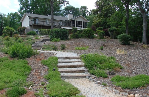 Outside: This home is located on a quiet, no wake zone cove, perfect for fishing and swimming. There is a large covered dock with plenty of area for lounging and swimming including an easy access walk down ladder to easily get in and out of the water. The dock has covered overhangs on both sides, so you always have the choice to either sit in the sun or shade. There are several chairs for your use on the dock. There is enough space on the dock for 2 boats. This is a no-wake cove, so boat traffic is minimal. There are 2 kayaks for your use as well. The Keowee Marina is nearby for boat drop in.
