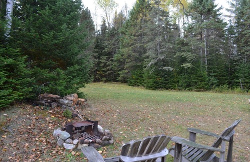 Lake Abanakee Camp is more like Lake Abanakee Home than a camp, with brick fireplace, hardwood and nice quarry tile look vinyl flooring, natural wood cabinets and walls, birchbark themed kitchen wallpaper (nice kitchen), and lots of Adirondack touches from rug to artwork to lamp/end table. The 'screened porch' is actually a room off the kitchen with 2 windows that have screens when opened. There is a nice view of the lake across a quiet neighborhood road from all 3 of those rooms.The small wading beach is not ideal for swimming (kids will like it) because the water is shallow at this spot but there is a dock for boating. You will spend many pleasant hours and meals sitting in the chairs by the water. You might see the doe and fawn along the shore to our right as well as at different times duck and 8 tiny ducklings, 6 geese, and loons can be heard throughout.. An active osprey nest is atop a pole in the middle of the causeway. The double lot with the lawned sideyard on one side of the house provides privacy, and the neighbor on the other side never uses their dock or waterfront next to ours, so it gives you more of a feeling of having this section of the lakefront to ourselves. Friendly community (people wave); quiet at night. You might want to climb up Chimney Mt to a fine view from some of the rock formations at the top or kayak/fish on the lake. There is a nice small swimming beach, convenience store, and a few eateries a couple miles away in the town and more trailheads along the road to beautiful Blue Mt Lake with state owned islands, just one of many paddling experiences nearby in addition to miles of exploration in Lake Abanakee itself. Approximately 4 miles long and ½ mile wide, Lake Abanakee winds around islands with nesting osprey and eagles. Both large and small mouth Bass are abundant, as are the more elusive Northern Pike. The plentiful pan-fish population will keep the beginning fisherman interested, while the experienced hand can attempt a larger catch, including Muskie and Walleye. Lake Abanakee is exceptionally quiet. Rare is the loud motor boat, though trolling motors are welcome. Paddle enthusiasts will find hours of leisurely touring. Or, travel up the Indian River and over a wooded portage to experience Indian Lake. NOTE: this is a cabin in the woods, there will be wildlife, maybe a mouse, maybe a moose, one never knows.