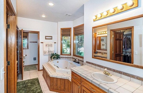 Beautiful 4 bedroom lodge with fireplace, laundry and jacuzzi tub. Great view and 50 acres of forest trails. Bring your horses and trail ride, your 4wheeler, or walk the trails. Or relax by the fire or outside around the fire pit! Perfect for a family get away or small family reunion. Plenty of parking and stalls for horses. Beautiful open kitchen for family gathering around meal time.