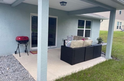 Discover the beauty and peaceful neighborhood of Citrus Springs! This brand new home finished in June of 2024. Our blue vacation home will be everything you need for a peaceful and delightful stay in Central Florida. Access your vacation home from a hassle-free door, set with your personal code to the property. When you open the door, experience the convenience of open concept living with everything on one level. Comfortable seating awaits you with a 65 inch smart tv, equipped with WIFI and Sling TV to watch the big game. Enjoy a well equipped kitchen with all the cooking essentials including standard stainless steel appliances, blender, crockpot and much more. While staying in can be great, you can venture out with everything you need! Two double kayaks, 3 sets of inflatables, beach chairs, beach umbrella, and cooler are available during your stay. At the end of your day, relax on the patio with a cocktail and grill out. Finally retire after a long day and fall sleep in blissful luxurious bedding.