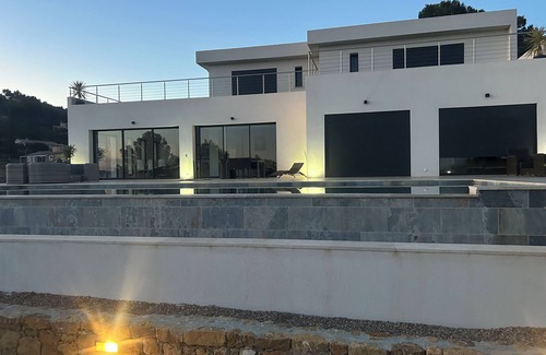 Très belle villa luxueuse moderne avec grand toit terrasse (120 m2) ,neuve avec magnifique vue dans un quartier très très calme.