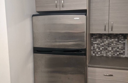 Quiet residential neighbourhood with private side entrance to suite and free parking on the driveway. Newly renovated 1 bedroom and 1 full bathroom with bathtub. 55" Samsung Smart TV with Netflix, YouTube Premium, Amazon Prime, and Bluetooth to connect to the included Bluetooth Bose headset for late night entertainment. Brand new 2 in 1 washer and dryer. Automatically dries clothes after the wash load is complete. Queen Size bed and full kitchen with pots, pans, dishes, cups, and silverware.