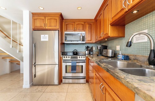 Maalaea Kai is within a few minutes’ walk to the famous Sugar Beach, known as the longest stretch of beach on Maui. Everything you need is right within walking distance from your resort, including many shops, restaurants, beach activities such as snorkeling, surfing, swimming, beach combing, boating, and even an aquarium! Maalaea is a quaint little harbor village very centrally located on Maui, offering a short commute to many excursions on the island. This spacious condo has been gorgeously remodeled and decorated, and comes fully equipped, featuring free high-speed Wi-fi, 2 Smart TVs, Cold AC, and a fully stocked kitchen for making great meals at home. The condo has a king bed in the upstairs primary bedroom with an ensuite bathroom and walk-in shower, as well as panoramic ocean views from your gigantic window. Lay in bed and enjoy the stunning ocean view! The second bedroom has a king bed as well and the bathroom is located right outside the room. Great separation of spaces and bathrooms. We also supply the essentials you will need for the beach: chairs, coolers, umbrella, etc.