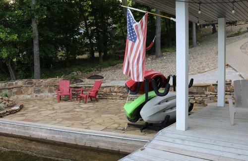 A quiet, peaceful cove of Loch Lomond is a short walk down a paved path. Three kayaks and pedal boat, covered dock with ceiling fan, beautiful stone patio, and fire pit are waiting for your use. This cove is perfect for swimming, floating, kayaking, sunbathing, fishing, or just sitting and enjoying the quiet. A wide variety of birds and critters that enjoy our cove add to the charm and ambience of this little gem in Northwest Arkansas. The oversized two car garage has plenty of room to store your mountain bikes, golf clubs, or other large items.