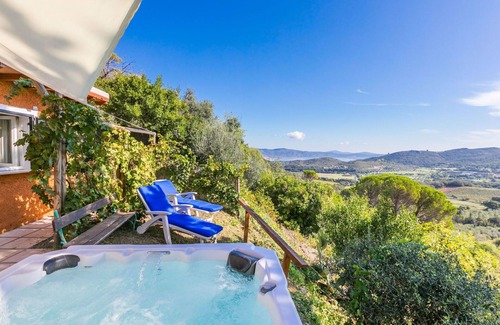Beautiful private villa for 6 guests with A/C, hot tub, WIFI, TV, patio and pets allowed is located in Monte Argentario. Beautiful private villa for 6 guests with A/C, hot tub, WIFI, TV, patio and pets allowed provides accommodation, featuring Balcony/Terrace, Sports/Activities, Fireplace/Heating, among other amenities. This House features Balcony/Terrace, Sports/Activities, Fireplace/Heating, to make your stay a comfortable one.