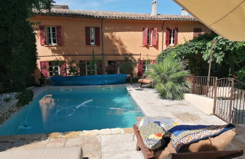 Live the Provencal life in a bastide of 150m2, renovated with 3 bedrooms, 2 bathrooms, a large kitchen for 6 people, a living room with fireplace, heated pool, garden and summer kitchen (plancha) under floral ornamental awning.