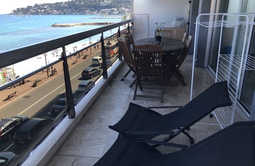 Residence by the sea with a terrace of 12 m² facing the sea and the beach. Beautiful apartment T2 facing the sea near many shops. Can accommodate 4 people with two twin beds and a sofa bed for two. Renovated kitchen and living room this year. Private parking with reserved place, behind the residence. Minimum rental period of 7 days. Diving and sailing club in front of the residence.