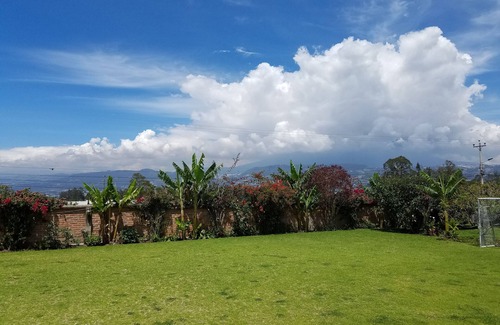 A beautiful retreat in the valley of Puembo, Quito. Perfect for business or tourism. Short ride from the airport. Views are extraordinary! New and modern construction with spacious rooms and open concept kitchen and outdoor areas. Fully furnished. It has two-car parking space. WiFi is included. 25 minutes to Quito's mayor areas. Close to two major cities, Cumbaya & Tumbaco. Se habla espanol.