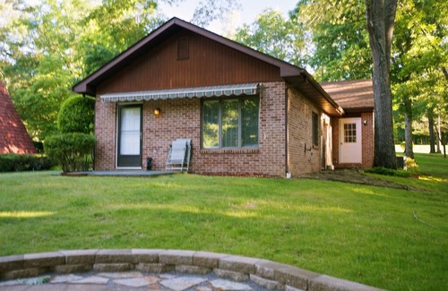 Relax and watch the White River flow by from the deck of this A-frame home in Lakeview, Arkansas. White Star offers excellent accommodations.