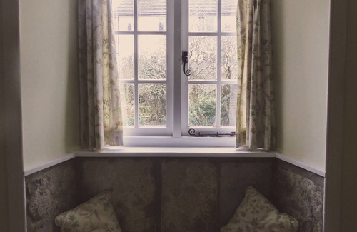 From the flag-stoned porch, the front door leads into a small hall with the sitting room directly off. This cosy room has a bay window and a working fireplace. There is a sofa, armchairs, TV, video/DVD, hi-fi with CD player. The room is stocked with books, and games. Fast WiFi is included with your booking.
