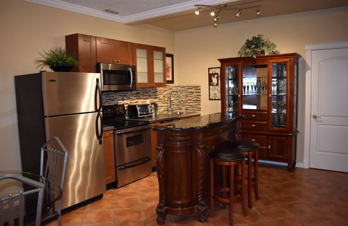 Spacious one bedroom one bathroom suite with separate entrance. It has full kitchen, dining, living with 55" TV. There is wi;fi and cable TV' Queen bed in the bedroom, and pull out sofa in the living room.