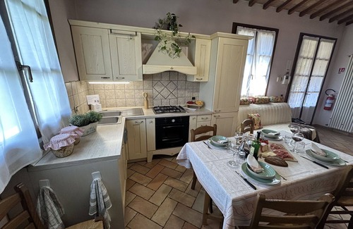 After arriving at Dimora Palagio you’ll find a beautiful clean well-maintained property with views of the mountains ideal for a splendid vacation in Tuscany. After a hectic day of sightseeing, spend some time with friends and family enjoying a glass of wine - a perfect way to unwind at the end the day. If you enjoy cooking for family and friends there is a well-equipped kitchen including toaster, stove and refrigerator, as well as, plenty of tableware and cutlery for up to six people. If you prefer to dine 'al fresco', there is a fully furnished garden where you can enjoy the weather while dining outdoors.