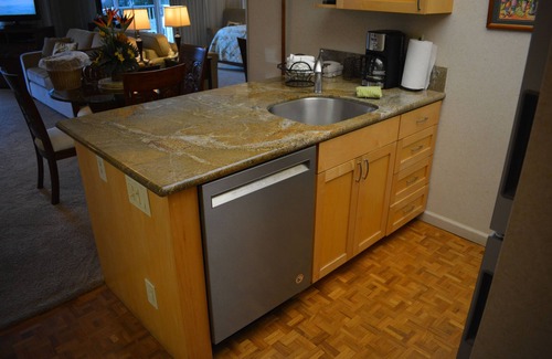 Available year round and just steps from the beach, our beautiful air conditioned studio was remodeled only a few years ago and is luxuriously decorated for your Hawaiian getaway. Unit number 265 is located on the second floor of the sunny south side of Tower II, and features a modern tropical décor with carved mahogany furniture, coordinating accent furniture, tropical flower arrangements and artwork.