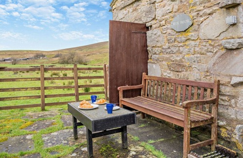 Enjoy the welcoming space as you walk through the front door. With lofty ceilings and characterful features, the open-plan lounge and dining room beckons you in for cosy evenings in front of the multi-fuel stove or breakfast whilst taking in the views. On the same floor, the kitchen offers all you need for your next staycation, well equipped to cook up a feast for two after a day in the dales. The bathroom, also on the ground floor, offers a walk-in shower. Heading up the funky spiral staircase leads you to the mezzanine bedroom with a double bed, perfect for a peaceful night’s sleep.
