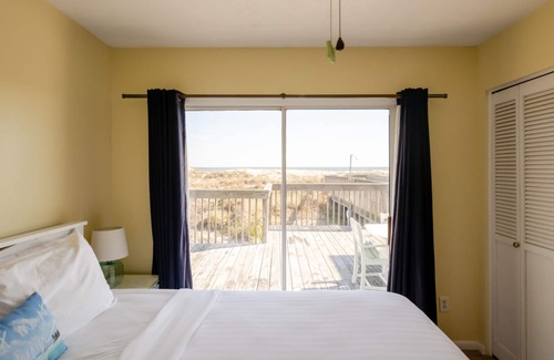 Bell's Retreat offers guests three bedrooms, all facing the ocean, including a large master suite with its own private bathroom. The master suite includes a luxurious king size bed, while the guest bedrooms offer a king size bed and full size bunk bed with a twin trundle. Both bathrooms have been completely renovated and have bright, cheerful colors, as well as double sinks in the master bathroom. The master bedroom and king guest room both allow access to the large oceanside deck, which is the perfect place to sit and enjoy your morning coffee with the peace and quiet of the north end beach.