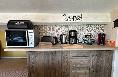 Dès l’entrée, un salon convivial avec une banquette XXL accueille vos soirées cinéma ou match sur la Smart TV 45”. Parfait pour les moments en famille ou pour vos ados ! La maison est équipée de la fibre Wi-Fi gratuite, idéale pour rester connecté ou télétravailler.