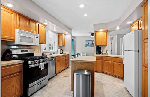 This 3-bedroom, 2-bathroom ranch-style home in Bellaire, Michigan, features a spacious open layout, a luxurious primary suite, and outdoor amenities including two kayaks, lawn games, a grill, and a fire pit. With neighborhood access to all-sports Intermediate Lake, it’s perfect for a relaxing or adventure-filled getaway.