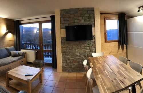 It is located in a 4* residence, chalet style (wood, stone roof), very bright and an incredible view over the alps and the ski resort.