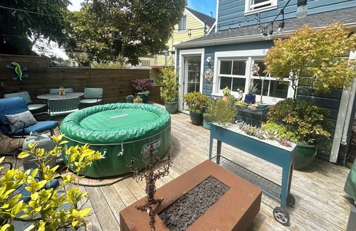 Easy access to everywhere in the Bay Area! Recently renovated, light and airy Bernal Heights home with garage parking on a peaceful tree-lined street. Close to shopping, restaurants, public transportation; under 5 minutes to highways 280 and 101. Home gym, Peloton, outdoor hot tub in a lovely back garden.