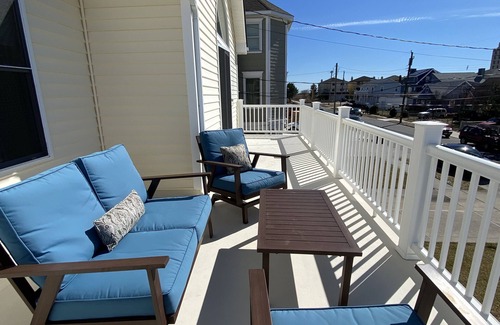 This family-friendly Brigantine home is perfect for your weekly vacation or long weekend retreat needs. Located in the A Zone "Flynn Inn " is just 5 houses away from the best beach in Brigantine. The spacious front porch is welcoming after a great day on the beach or the perfect place to read a book. This home offers 5 spacious bedrooms and 3.5 bathrooms. The first floor features a comfortable living room for entertaining. The kitchen has a large table for gathering, great for cards or board games.