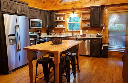 This Cabin Has It All: Brand new Kitchen, Appliances & Baths, Luxury Furniture & Linens, Wrap Around Decks, Large Gas Grill, 8 PERSON MAX. Game Room With Bar, Large Flat Screen TV's, Pool Table, Xbox 3 & 260 Arcade Games. Ample Room in the Wide Flat Backyard to Play All Your Favorite Outdoor Games. Fishing is Outstanding. Close to Blue Ridge, Ga Which Offers Great Dining, Shopping & Antiquing, festival's and a vibrant art scene. Located Within the Chattanooga National Forest & Just Miles Away from the Cherokee National Forest in Tn. Large Hot Tub. Log Burning Fireplace On the Main Level, Gas Burning Fireplace in the Basement. Stone fire pit in backyard. Occupancy is limited to 8 people due to septic system restrictions.