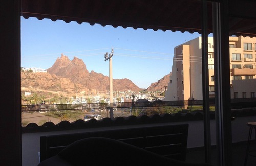This property is just like new! Come and enjoy your stay here at our second floor condo.. It is located within walking distance of anything you could need in San Carlos: convenience store, supermarket, restaurants and bars, beaches, the marina, and the catholic church. We just love the location and the views! There is a balcony with seating all along the front of the condo, with views of Tetakawi mountain and the marina. There is another in the back balcony off the master suite. The condo consists of a master bedroom with walk in closet and in suite bathroom, with a queen bed. The other bedroom contains two queen beds and a large closet.