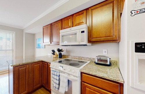 The main living area is located on the second floor, boasting a beautiful and sunny open floor plan that seamlessly combines all spaces into one. Curl up on the sofas after a refreshing splash in the community pool and stream your favorite movies or series on the smart TV. If you are visiting during the winter months, the wood-burning fireplace will be ideal. Attached to the living room is a bayfront balcony with an outdoor dining table, creating a fantastic spot to dine alfresco with an unbeatable backdrop. Back inside, the well-appointed kitchen has all the major appliances and utensils you could need to whip up delicious homemade meals and treats for the group.