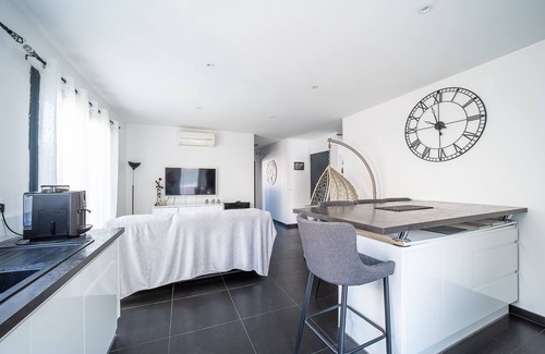 Cocoonr/Book&Pay agency offers in the commune of Peyrestortes, we offer this charming 118 m² house for rent, which can accommodate up to 9 travelers. It features an attractive 30 m² living room, a fully-equipped kitchen, four bedrooms, two bathrooms (with shower) and a 200 m² garden. Wifi (fiber optics) included, we're waiting for you!