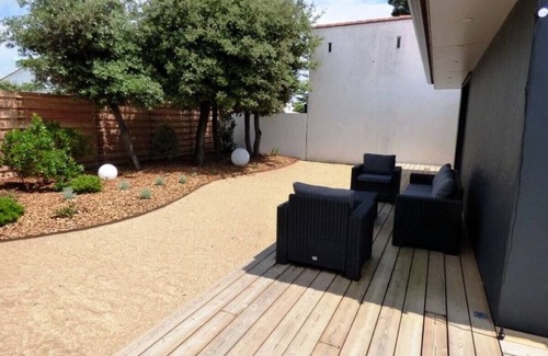 70m² house, rated 4*, located in a highly sought-after and very quiet neighbourhood, the Pironnière district. Idyllic setting, 750m from Tanchet Beach with a fully enclosed garden, large terrace equipped with a large shade cloth. Everything is within a 15-minute walk (shops, Tanchet Beach, Thalassotherapy, Zoo, Casino)