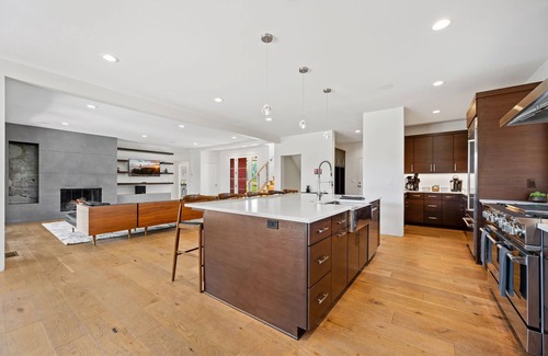 The chef’s kitchen is fully equipped with high-end appliances, generous counter space, and all the essentials—perfect for everything from family meals to holiday feasts.