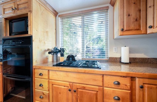 Our condo is a haven of comfort, designed to host up to four guests easily. Each bedroom is a refuge of relaxation, adorned with clean, high-quality linens, pillows, and towels. The living space, illuminated by natural light and mountain views, features a large TV and cozy seating in an inviting open layout. Families will enjoy a fully equipped kitchen with all necessary appliances and utensils, a gas stove, spacious countertops, a fridge w/ freezer, a microwave oven, and all the essentials.