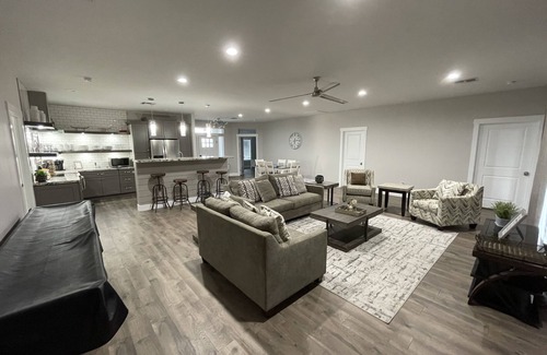 along with 4 bathrooms ( No more drawing straws for little Timmy's room)! Each room has it’s own luxurious bathroom! This means that your privacy is always #1 even when sharing the home! After a long day on the water you can come back and everyone has a place to clean up and be ready to hit the casinos or dinner in short order!! This design also features a Great Room configuration allowing all to interact, meal prep and entertain in this awesome space. The kitchen is spacious and loaded with all the cooking and food storage you could need. Another great feature is that this home backs up to the famous Area 51 Annex home! ( Coming soon to VRBO & HomeAway!) This allows you to book both homes for an even larger gathering of friends and family!