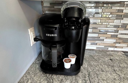 The kitchen includes a drip coffee pot and Keurig, a toaster, and a blender. There are plates, utensils, coffee mugs, glasses, and wine glasses. The kitchen is fully stocked with bar stools and a high top table. If you prefer to go out and explore HHI for dinner, you are in close proximity to restaurants and shops in Coligny Beach Plaza. A grocery store, the Tiki Hut, Frosty Frog Cafe, and Pool Bar Jim's are all within walking distance!