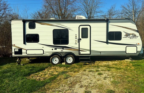Want to experience camping but you don't have your own camper? Come camp in our fully furnished Jayco camper! This camper is located on a full hookup site with sewer, water and 30amp electric and offers plenty of yard space for yard games, outdoor picnics and the campfire. The site has a firepit and picnic table.