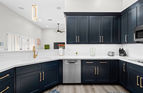 This home is perfect for multi-generational families or large groups with a variey of interests. The home has an open concept with the kitchen, dining, and family room all combined in the same room. The front of the home encompasses all the fun with a pool table, game table that can also be a poker table or bumper pool table. When you are tired of those activities, you can play Pac Man or Galaga on the arcade machine. The pool area also has plenty to do with a volleyball net, basketball net, mega connect 4, cornhole, or you can relax around the fire pit or sit on the rooftop deck and look at the hikers come down Piestewa Peak after dark. If you have any energy left after all the activities, try out the gym with adjustable dumbbells, yoga ball, or resistance bands.