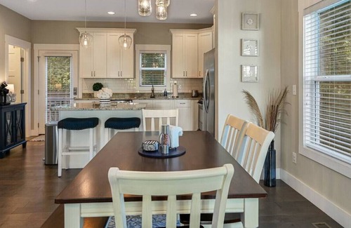 Family fun at this stylish mountain home just minutes from Biltmore Village and downtown Asheville. Enjoy a new home with the feel of a cozy retreat. Fun for young children and the young at heart!