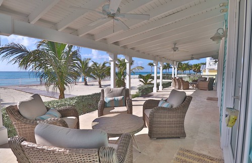 Our lovely and spacious three-bedroom, two-bathroom air-conditioned home is located on the beach of Bimini Bay Resort & Marina, a private, gated community. Bimini Bay is located in a very private, gated community. The design of this home truly maximizes your ocean view in every direction, but especially the breathtaking sunsets. The French doors open to the outdoor tropical breeze and wrap around a furnished, open-air/covered terrace. This spacious three-bedroom, two-bathroom home is all on one level. The master suite features a king bed, a master bath (shower and tub combination), and an ocean view with terrace access. 2nd bedroom: a Queen bed & ocean view with terrace access, 3rd bedroom: a queen bed. The main living area with high ceiling is centered in the home, separate dining area, with dining table & seats 8 people, a fully equipped kitchen including granite counter tops, stove, refrigerator, and microwave. Other amenities include a Keurig coffee maker (just bring your favorite flavor), washer & dryer, weekly cleaning (daily service available upon request), all linens and towels, cable television in every bedroom, FREE high-speed Internet/WIFI. This home is the perfect getaway for a family or a larger group looking for additional space.