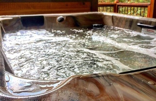 The floor plan gracefully integrates indoor and outdoor spaces, permitting simple yet sophisticated living. A covered and secluded alfresco space encapsulates a cozy and scenic setting with a real wood-burning fireplace enclosed in floor-to-ceiling stone. Who doesn't love a fresh kabob off the grill? With a propane gas grill and outdoor dining table for four at the ready, you can do just that! After a long day enjoying the outdoor activities surrounding the cabin, a soak in the hot tub will relax and rejuvenate the body and spirit. This spacious hot tub is ready to accommodate up to 4 guests. Because a trip to the woods is not complete without a place to toast s'mores or grill a hot dog over an open fire, a custom fire-pit completes this outdoor landscape to perfection. You can enjoy a spirited game of Cornhole out in the open and enjoy the crisp, mountain air. Don't miss the amazing starry skies the area is known for.