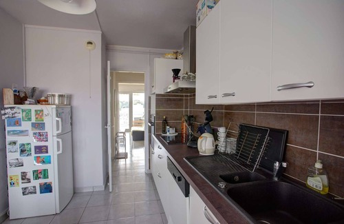 Équipements du logement: Frigo/congélateur, machine à laver, four, plaques de cuisson, cafetière senseo, grille pain, bouilloire, ustensiles de cuisine, TV, table et chaises de jardin, canapé, 2 lit double 140*190, une salle d'eau avec douche.