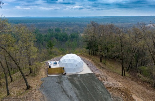 Two bedroom Glamping dome on a private 15 acre campground in beautiful Black River Falls Wisconsin with beautiful views at the top of the bluff. Imagine waking up in the morning to a beautiful Wisconsin sunrise with breath taking views right out your bedroom window.