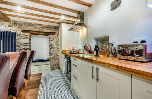 Blacksmiths Cottage is one of two stunning properties boasting a hot tub and situated near the banks of the Pembroke Mill Pond and within the historic market town of Pembroke. This superb stone cottage is teaming with character and charm and has been meticulously restored by its current owners to a high luxurious standard retaining every feature and quirk possible. This perfect family retreat is nestled within the heart of this historic, traditional town and only a 10-minute walk to Pembroke castle. This Norman castle is famous for being the birthplace of King Henry VII. You can also enjoy a host or restaurants, shops, cafés, and boutique craft shops all from your doorstep, along with 186 miles of the Pembrokeshire Coast footpath being close by. Blacksmiths Cottage dates back to the 16th century (we are led to believe) and was once the home of a local blacksmith. This truly unique property has been painstakingly restored to a high standard and has retained all of the character. As you enter the open plan beamed kitchen, dining and living area, this warm and social space is perfect to prepare that special meal with a bespoke fitted kitchen with solid oak worktops. This well-equipped kitchen with double oven is perfect for some home cooking. On an evening sit back and relax in front of the wood burner or retire to the cinema room and watch your favourite movies. Each bedroom boasts vaulted ceilings, beams, exposed stone walls and en-suite facilities with the master suite boasting a free-standing slipper bath and wood burner. On an evening you can relax with a 'glass' of bubbles in your private hot tub and watch the stars.