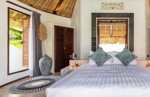 Nestled amid Bali's vibrant rice fields, Villa Naya offers a harmonious blend of natural beauty and tranquility. Every detail is meticulously crafted for an unforgettable stay. Balinese architecture meets Scandinavian design, creating a warm, inviting ambiance that seamlessly integrates with the lush surroundings. Enjoy the serene atmosphere, surrounded by palm trees and vibrant rice fields. Plus, enjoy a complimentary airport transfer for a seamless journey into paradise.