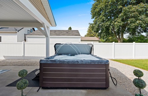 The exterior area is shared between the upper and lower levels of the duplex. This includes the patio, driveway, and hot tub. There will be a privacy fence, awning, and gazebo installed on the property in the future but we do not have a timeline on these items at this time. The hot tub is fully functional and usable but is shared with both upper and lower units.